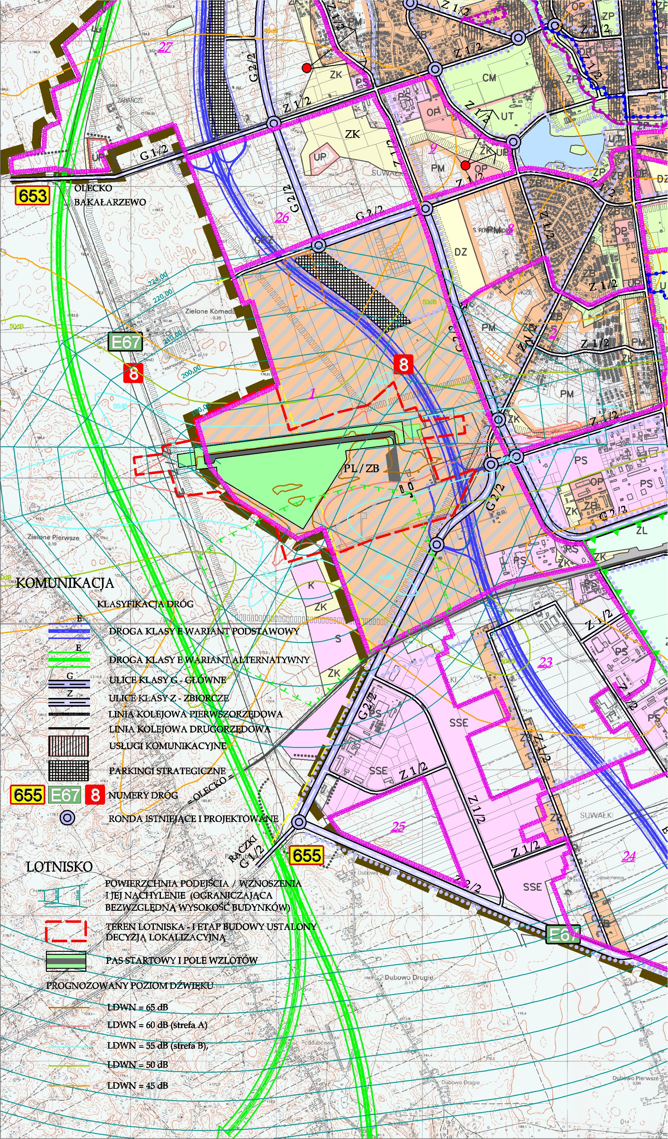 5) zmiany przeznaczenia terenów:a) pod lokalizacje parkingów strategicznych,b) w obszarze oddziaływania lotniska komunikacyjnego i obwodnicy miejskiej;