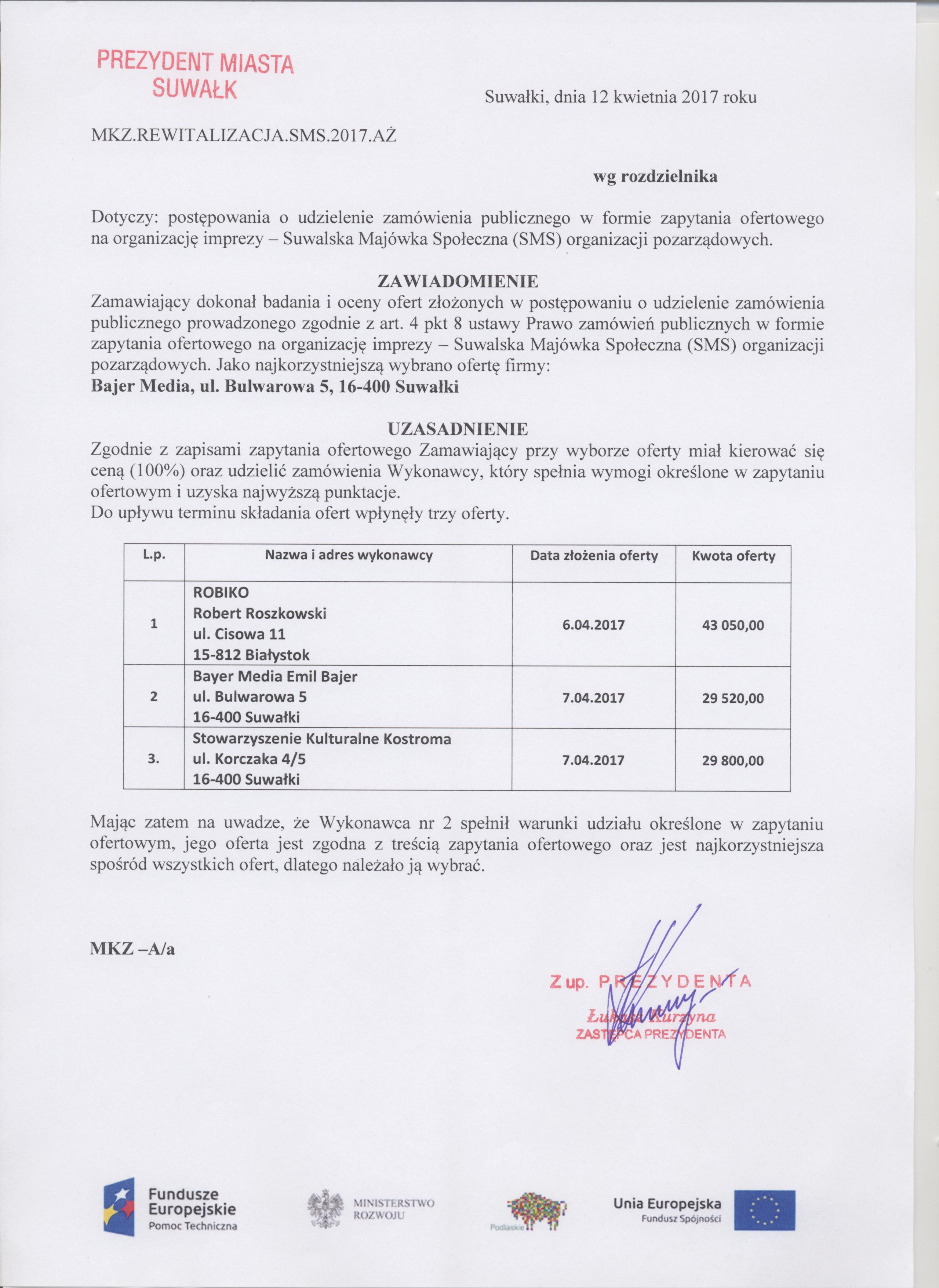 | Dotyczy | organizacji imprezy "Suwalska Majówka Społeczna" |