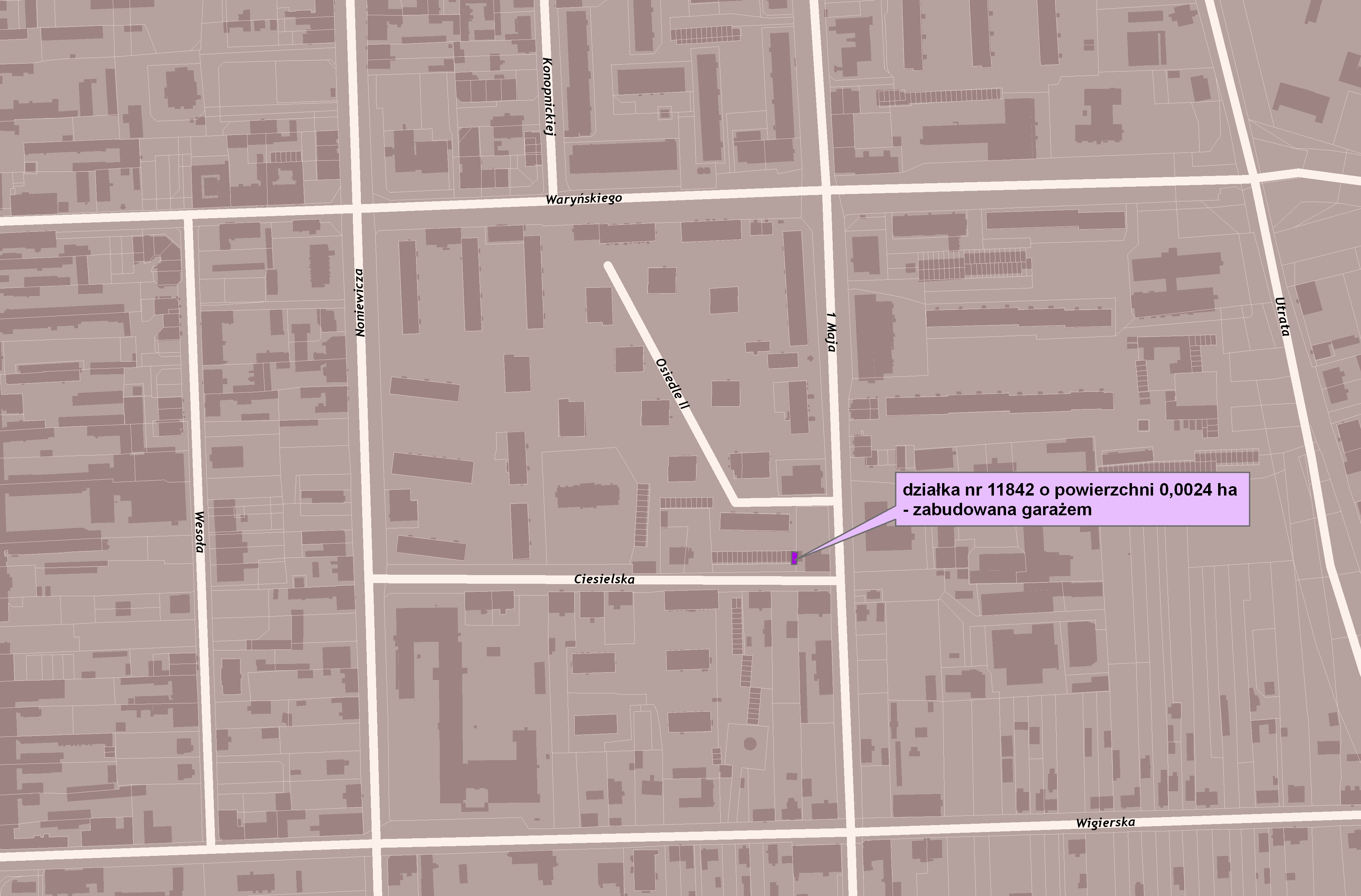 3. oznaczona działką nr 11842 o powierzchni 0,0024 ha, położona w Suwałkach przy ul. Ciesielskiej, posiadająca urządzoną księgę wieczystą nr SU1S/00028103/7, zabudowana budynkiem garażowym murowanym o powierzchni zabudowy 20 m2. Nakłady poniesione na budowę garażu nie są własnością Miasta Suwałk, wartość ich wynosi 14 407 zł (słownie: czternaście tysięcy czterysta siedem złotych). Nieruchomość przeznaczona jest do sprzedaży w drodze przetargu na cele zabudowy garażowej z nakładami osób trzecich.