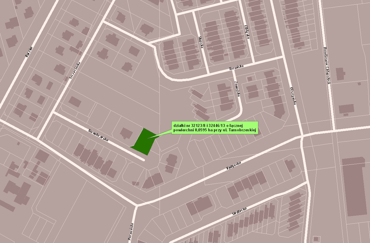 1. oznaczona działkami nr 32123/8 i 32446/13 o łącznej powierzchni 0,0595 ha, położona w Suwałkach przy ul. Tarnobrzeskiej, posiadająca urządzoną księgę wieczystą nr SU1S/00030587/0. Nieruchomość przeznaczona jest do sprzedaży na cele zabudowy mieszkaniowej jednorodzinnej wolnostojącej. Szczegółowe warunki zabudowy zawarte są w miejscowym planie zagospodarowania przestrzennego zatwierdzonym Uchwałą Nr XLI/445/2013 Rady Miejskiej w Suwałkach z dnia 30.10.2013 roku. Na ww. nieruchomości znajdują się sieci wodociągowe i kanalizacyjne. Nabywca zobowiązany będzie do nieodpłatnego znoszenia tych sieci oraz nieodpłatnego udostępnienia wejścia na grunt w przypadku ich awarii bądź konserwacji. W przypadku kolidowania sieci z nową inwestycją, nabywca na koszt własny dokona ich przełożenia w uzgodnieniu z właścicielem sieci.