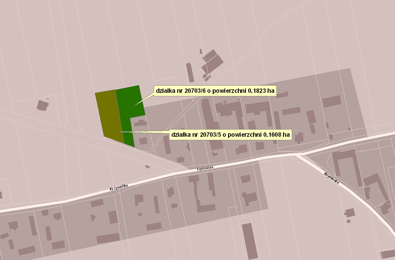 1. oznaczona działką nr 20703/5 o powierzchni 0,1608 ha, położona w Suwałkach przy ul. Krzywólka, posiadająca urządzoną księgę wieczystą SU1S/00045537/3. Nieruchomość przeznaczona jest na cele zabudowy mieszkaniowej z usługami nieuciążliwymi. Szczegółowe warunki zabudowy zawarte są w miejscowym planie zagospodarowania przestrzennego zatwierdzonym Uchwałą Nr XLIX/456/2010 Rady Miejskiej w Suwałkach z dnia 23.06.2010 roku.