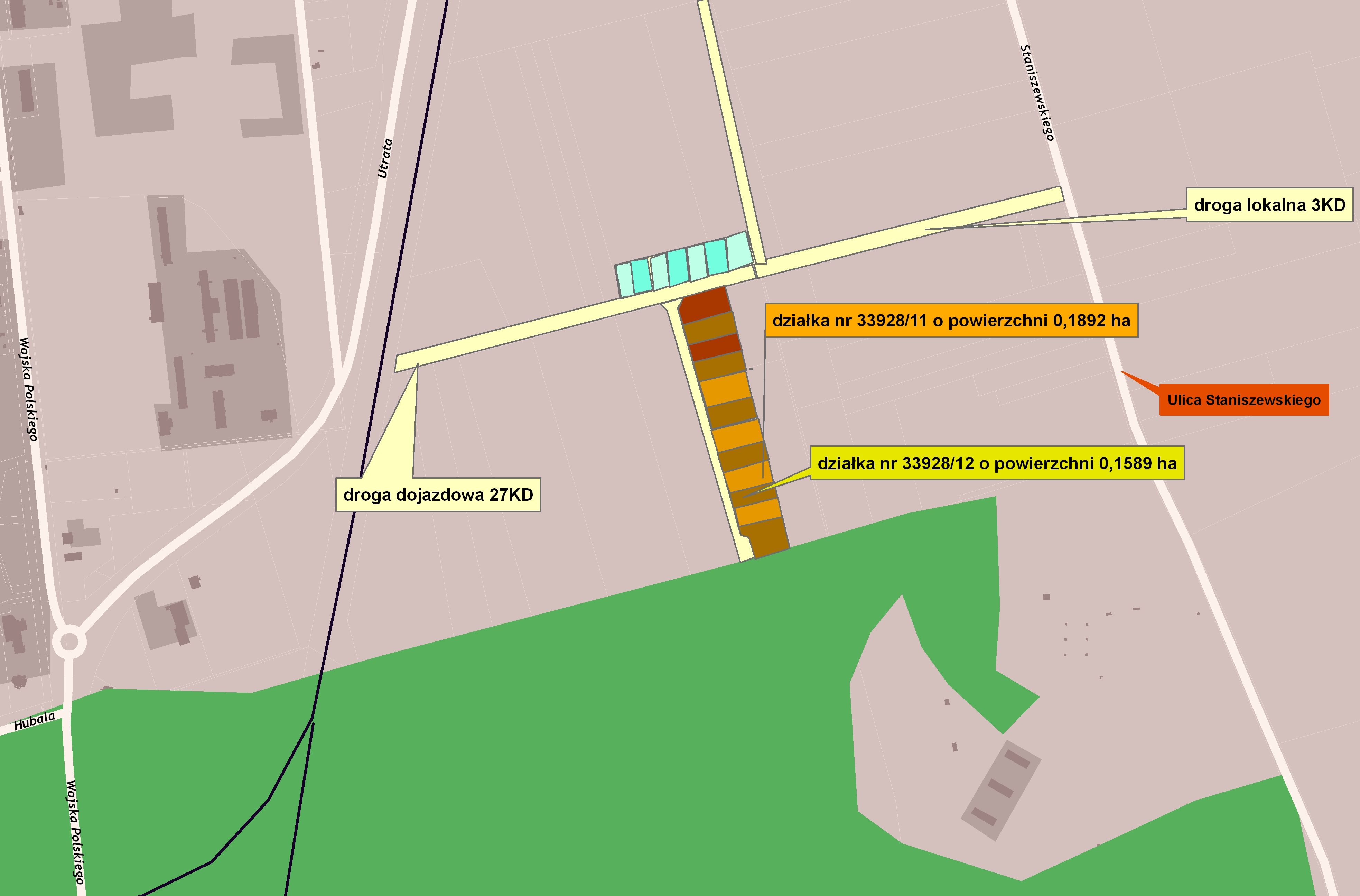2. oznaczona działką nr 33928/12 o powierzchni 0,1589 ha, położona w Suwałkach przy ul. Staniszewskiego, posiadająca urządzoną księgę wieczystą nr SU1S/00040509/3. Nieruchomość przeznaczona jest do sprzedaży w drodze przetargu na cele zabudowy mieszkaniowej jednorodzinnej wolnostojącej. Szczegółowe warunki zabudowy zawarte są w miejscowym planie zagospodarowania przestrzennego nr 61 zatwierdzonym Uchwałą Nr XL/440/2013 Rady Miejskiej w Suwałkach z dnia 25.09.2013 roku. Obsługę komunikacyjną przewiduje się z projektowanej drogi wewnętrznej, oznaczonej na planie 29KDW. Obecnie wydzielona geodezyjnie droga wewnętrzna 29KDW jest nie urządzona, uzbrojona jest w sieć wod-kan.