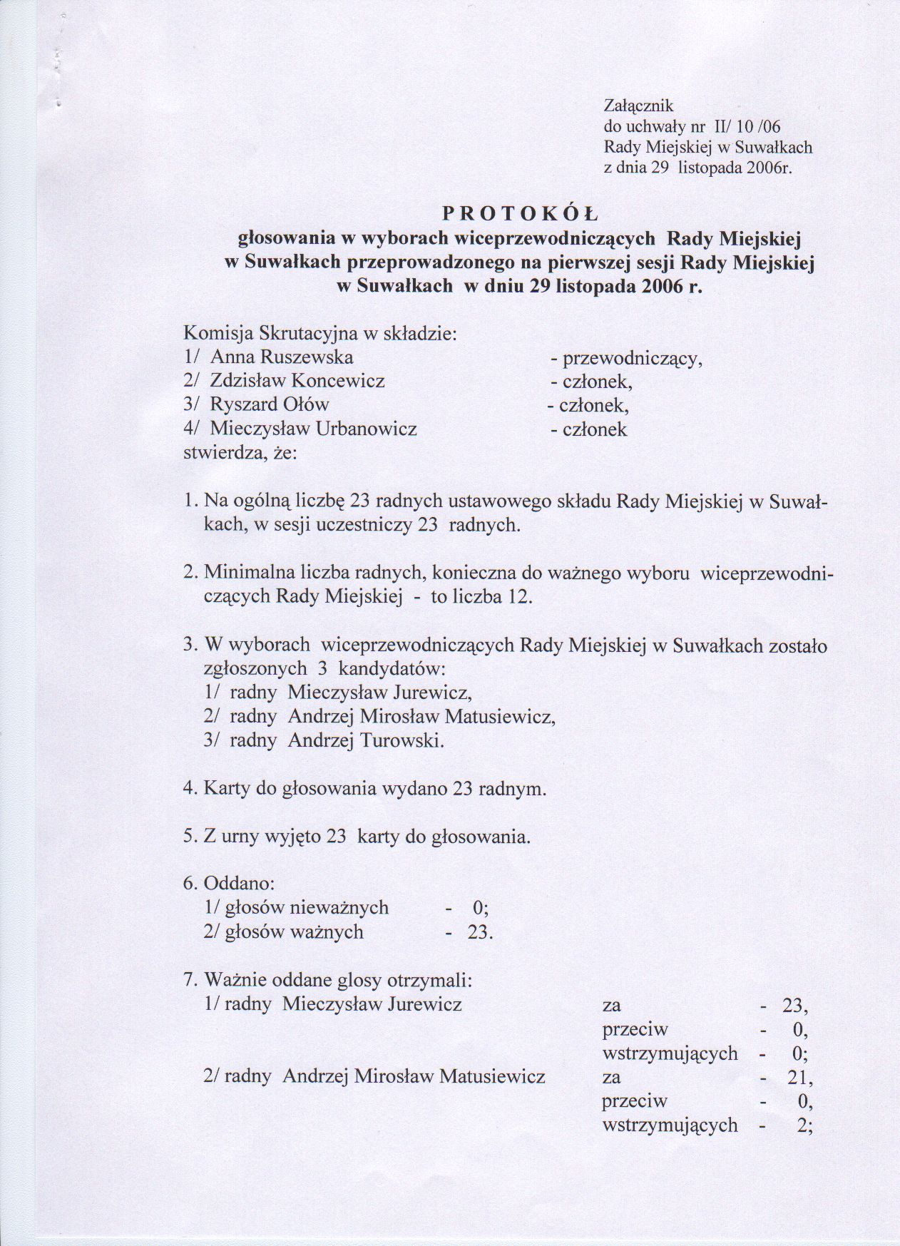 | Dotyczy | w sprawie stwierdzenia wyboru wiceprzewodniczących Rady Miejskiej w Suwałkach. |